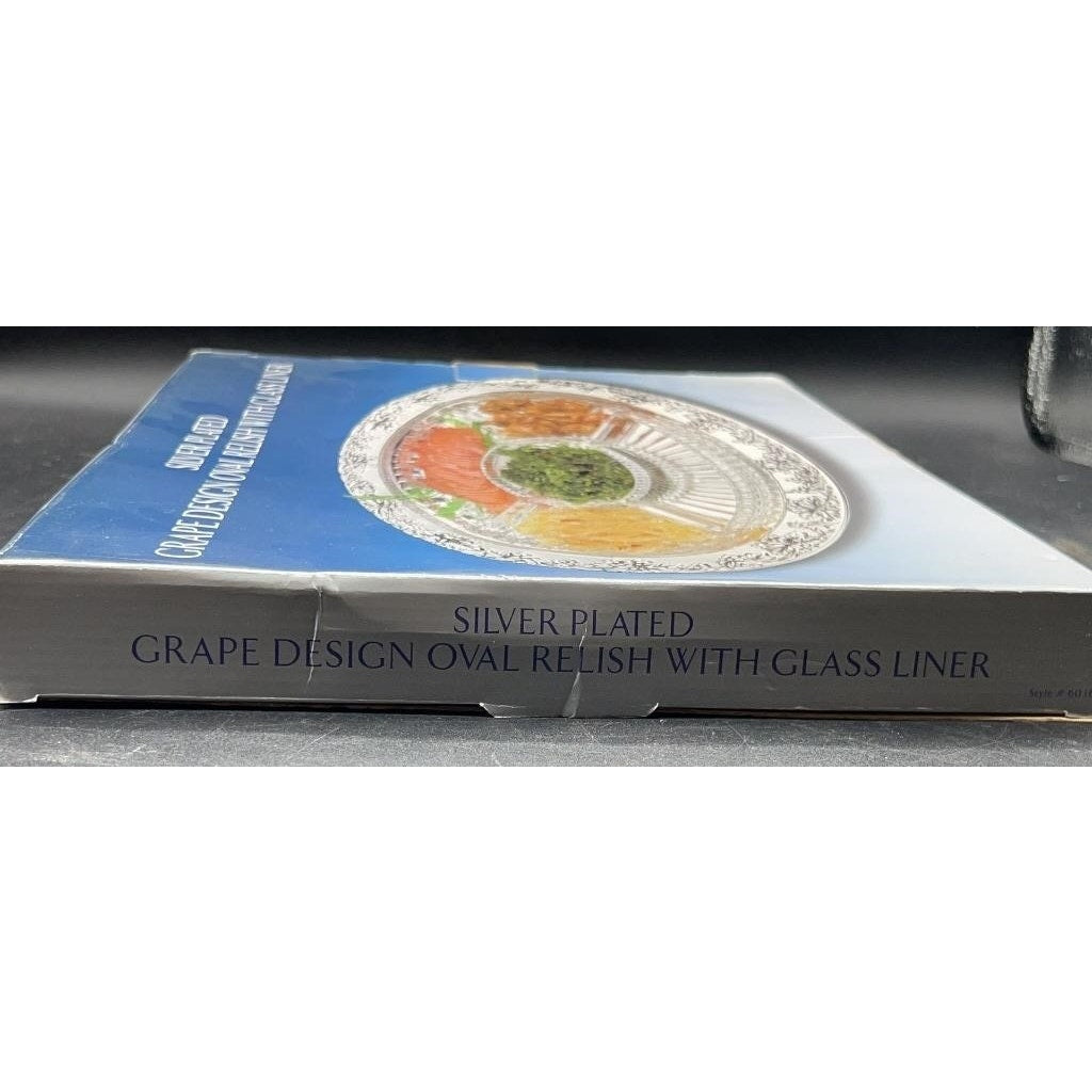 1980s Godinger Silver Plated Grape Oval Relish Tray w/ Glass Insert 16x12 VTG