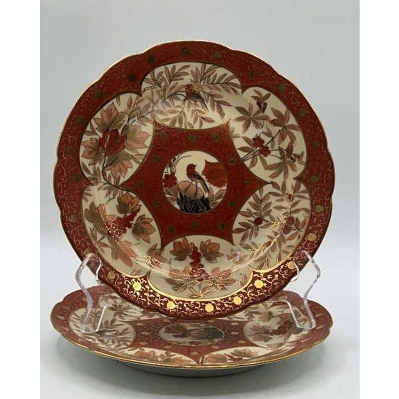 Antique C.F. Boseck Haida Austria Plates Pair Red Gold Scalloped 8" Japanesque