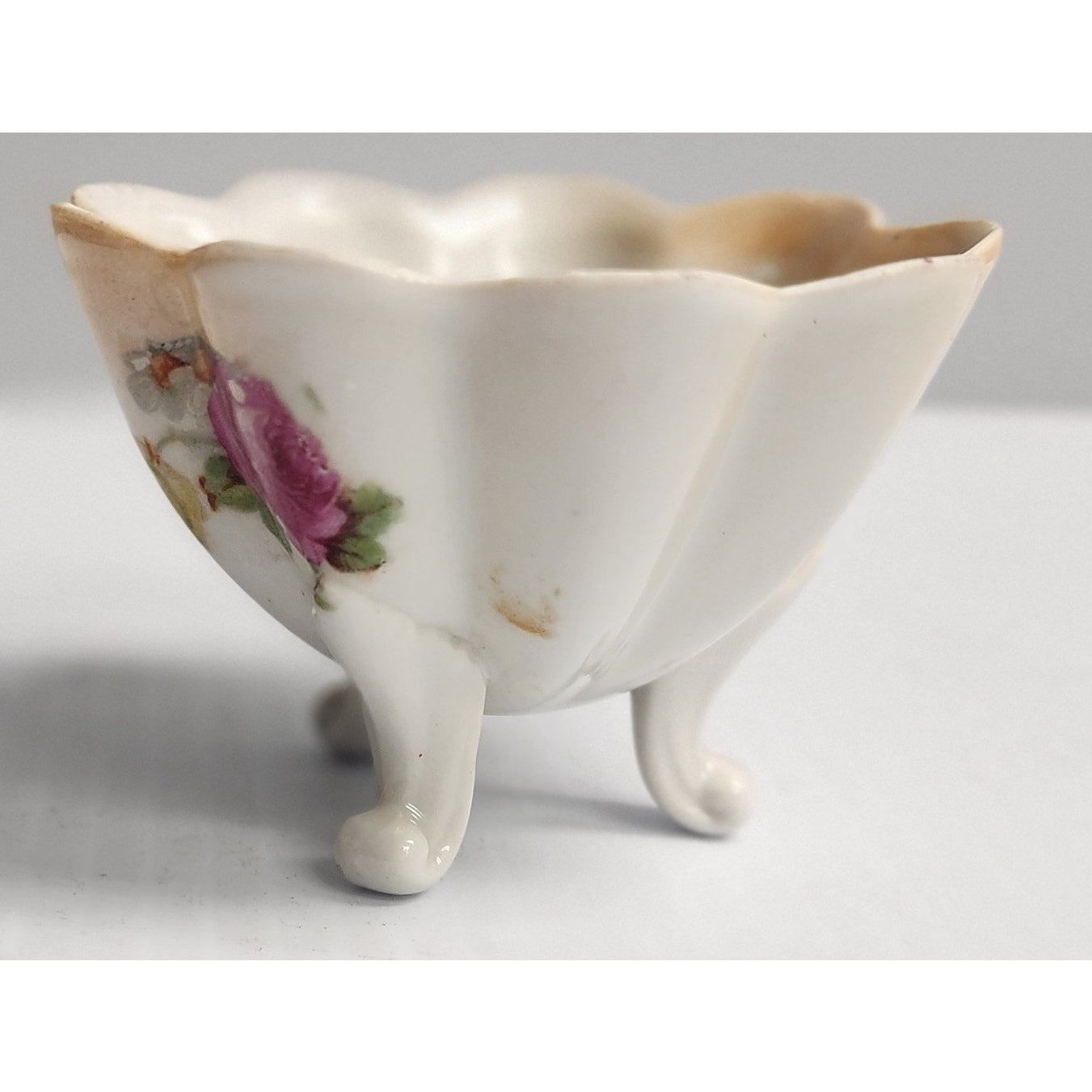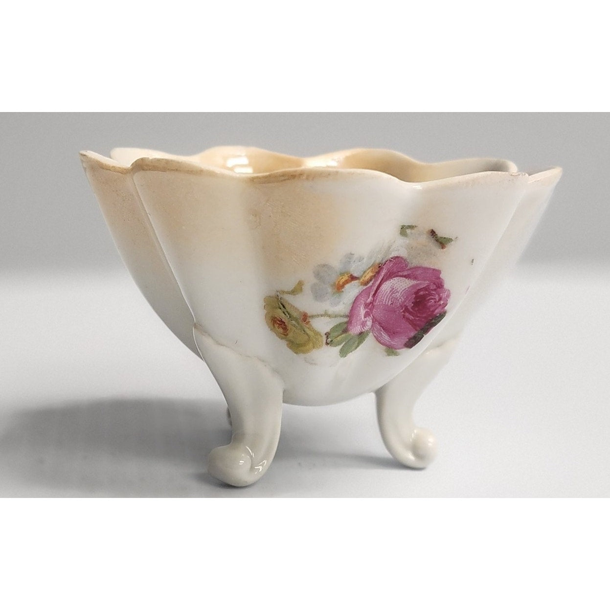 • Design: Scalloped rims, floral decoration both interior and exterior, with elegant raised feet.