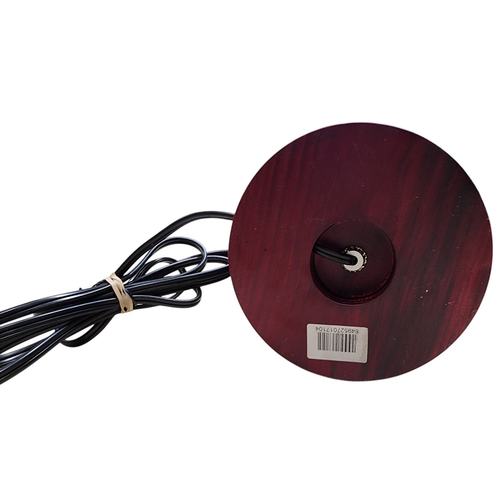 The lamp stands approx. 25 inches tall including the rich wood finial and rests on a rich wood base.