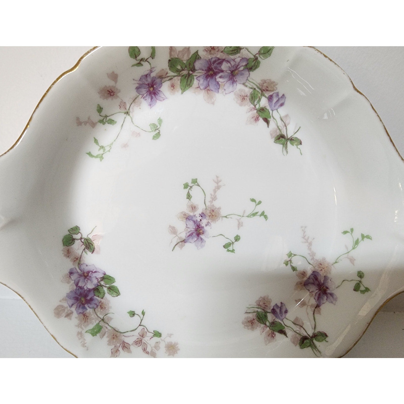 Elegant vintage porcelain bowl/tray crafted in Limoges, France by CH Field Haviland and G.D.A. Limoges.