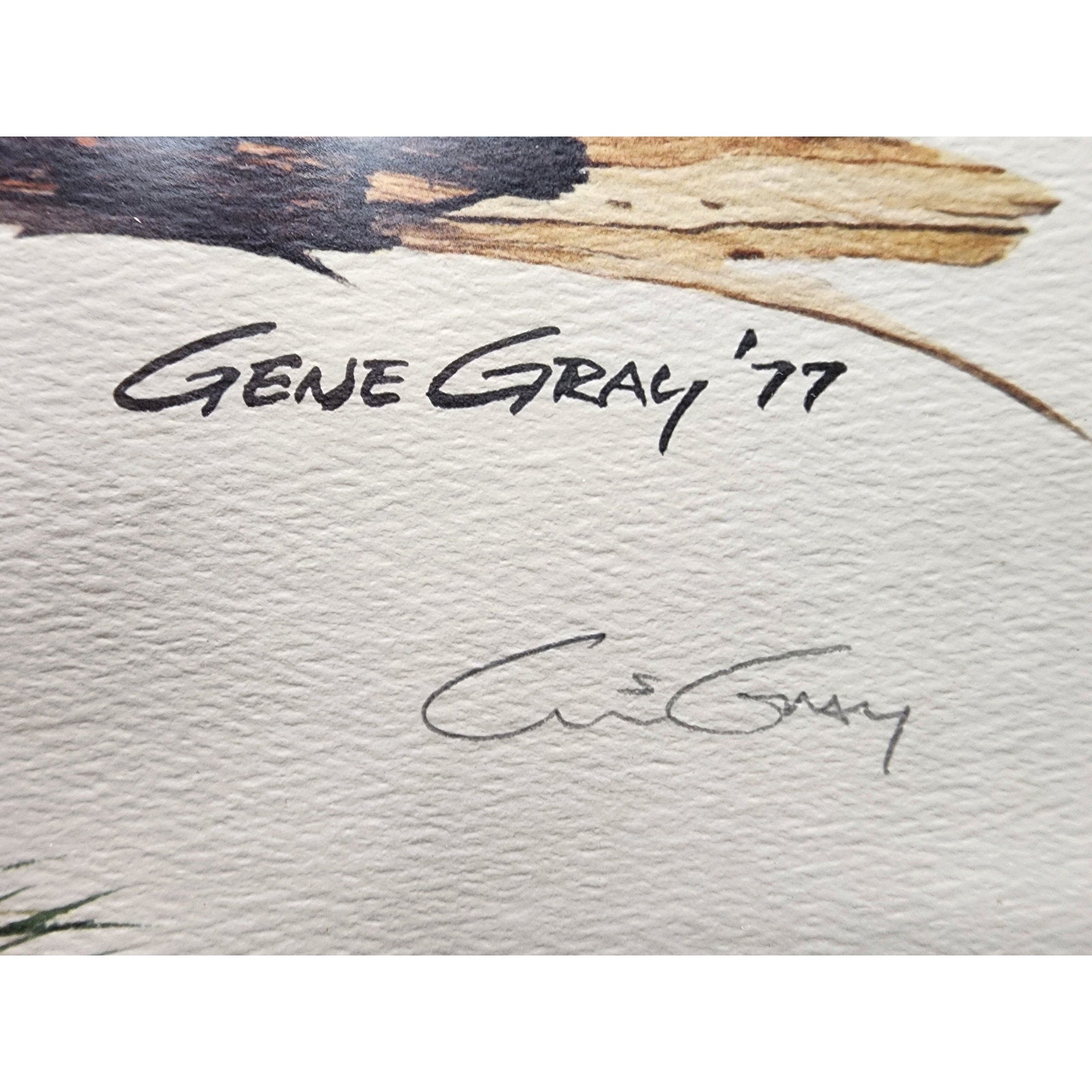 Gene Gray’s work is admired for its realistic wildlife portrayals, making this lithograph a wonderful addition for collectors of nature art, rustic cabin décor, or vintage wildlife prints.