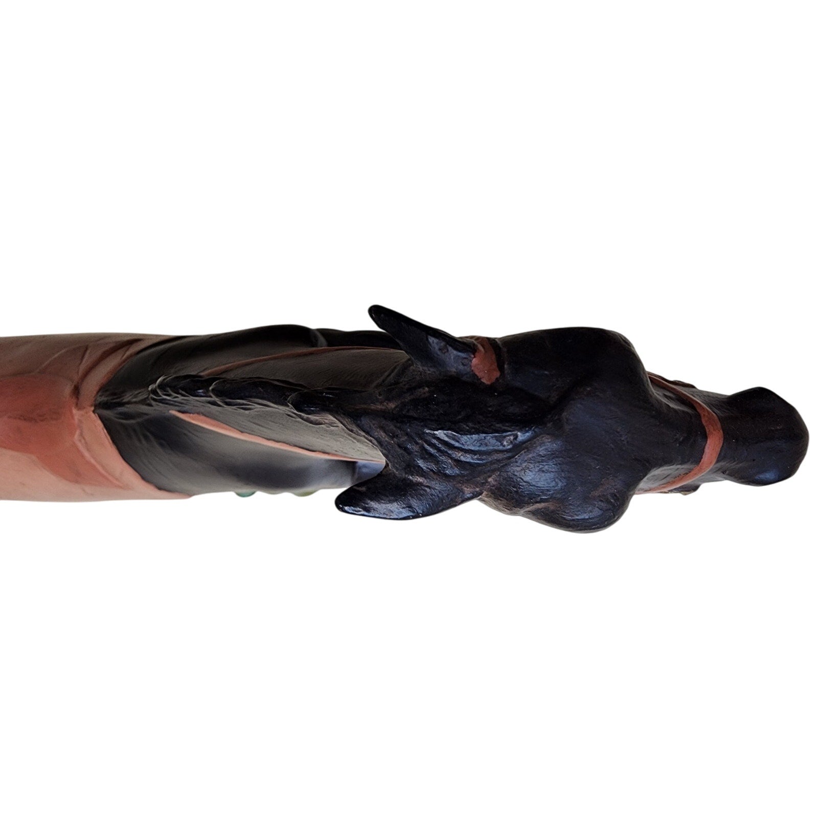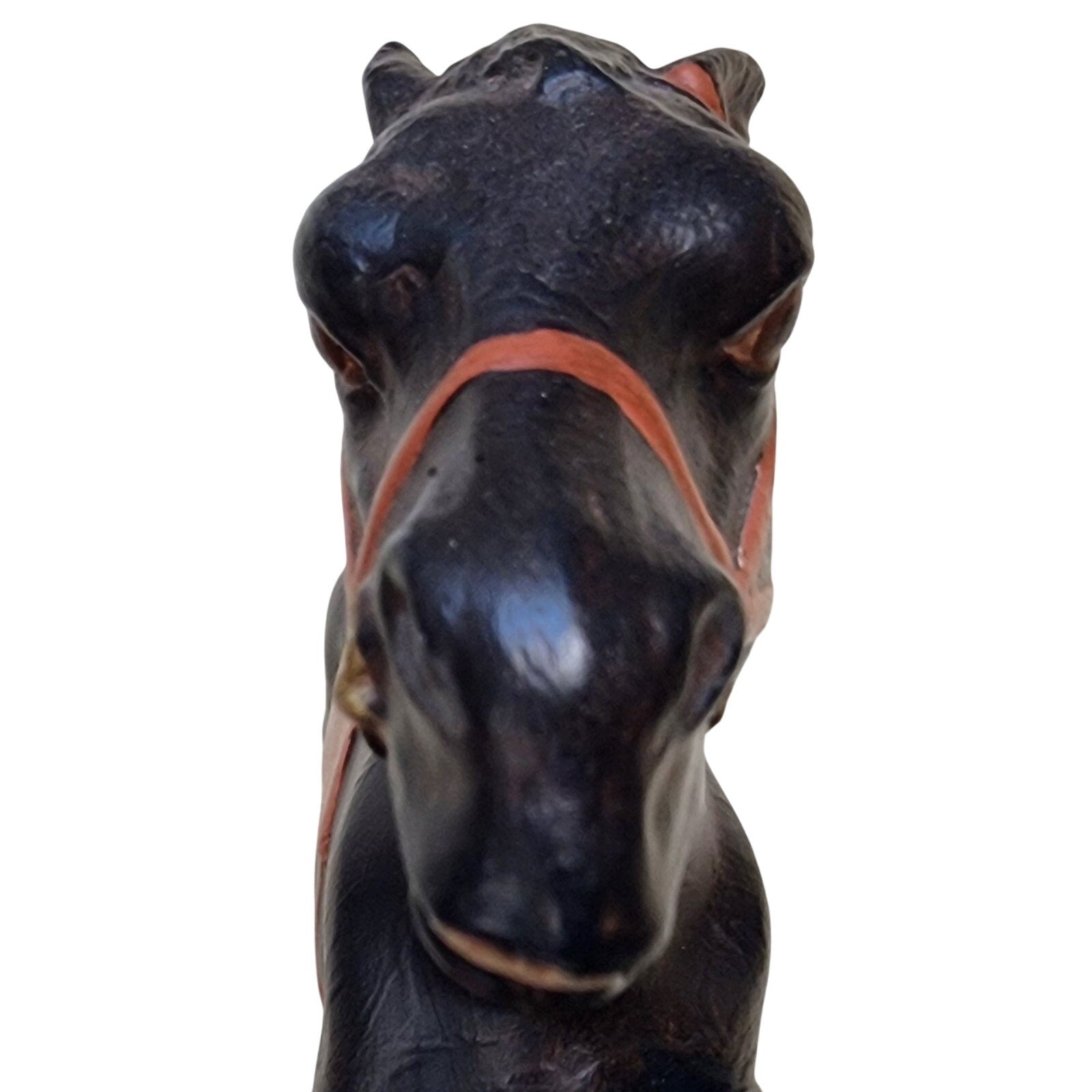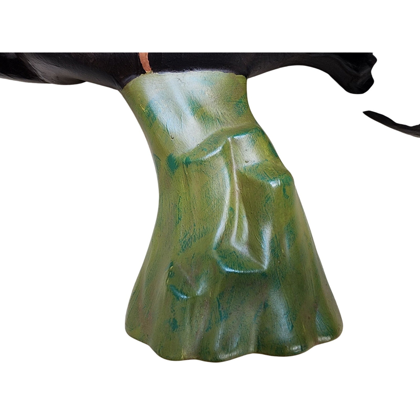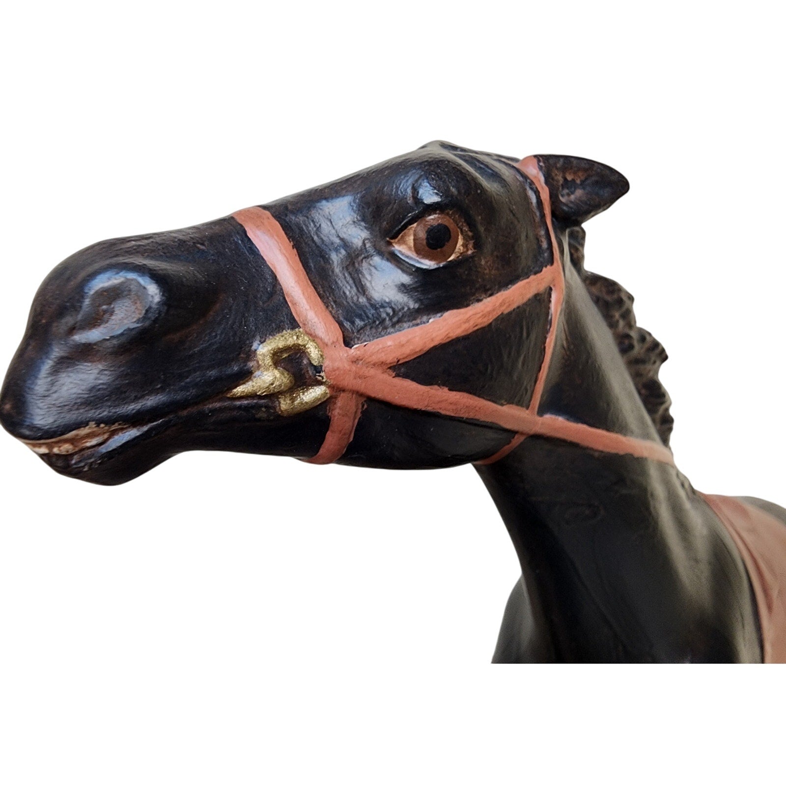 Hand Painted Ceramic Horse Figurine Running Action Black w/ Saddle 15.5”