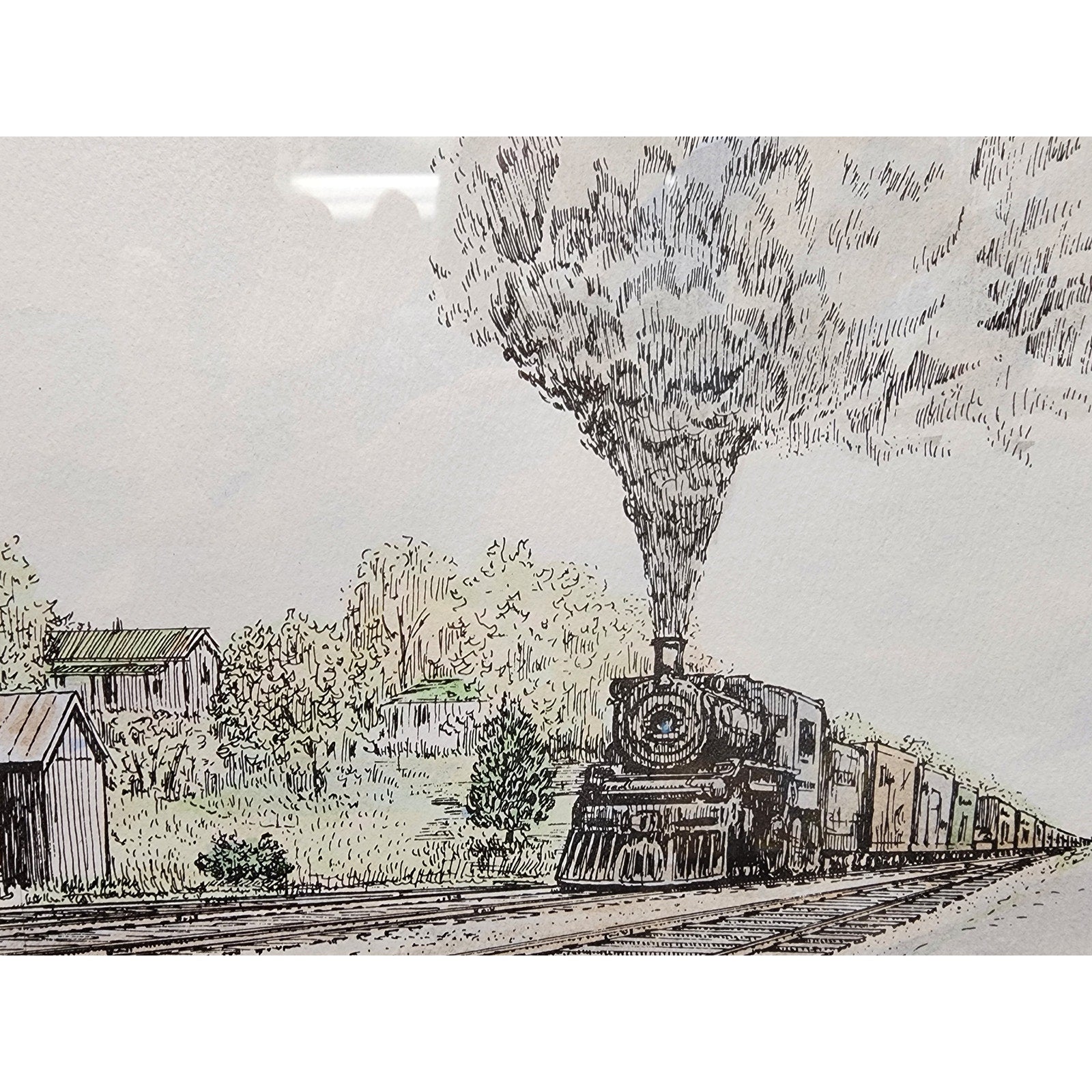 Howard Fain Signed Lithograph "On the Southern R.R. at Wilmore" Glass Framed VTG