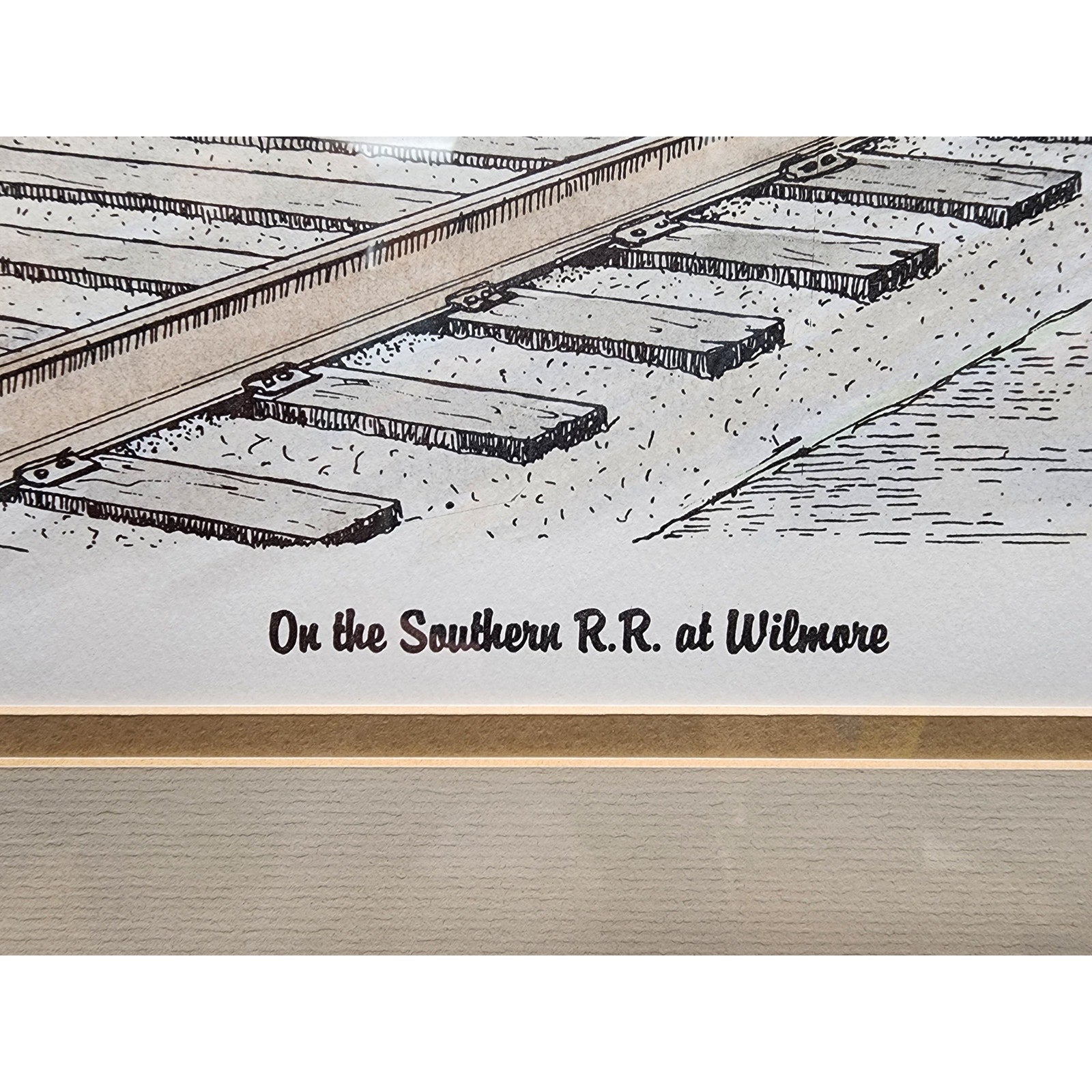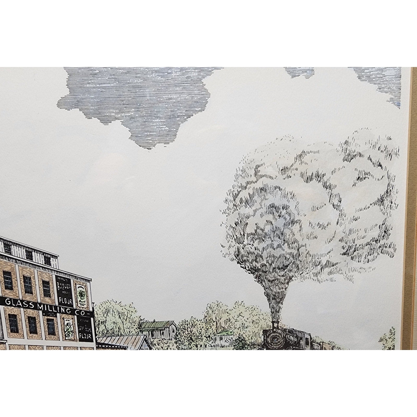 Bring a piece of Kentucky’s industrial and railroad history into your collection with this vintage, beautifully framed and double-matted signed lithograph by Howard Fain, titled “On the Southern R.R. at Wilmore.”