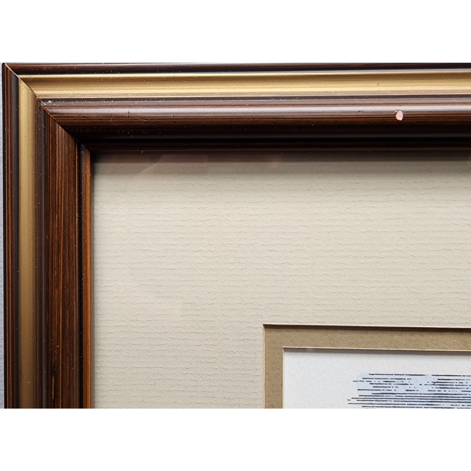 • Framing: Elegant brown wood frame with inner and outer gold beveled accents.