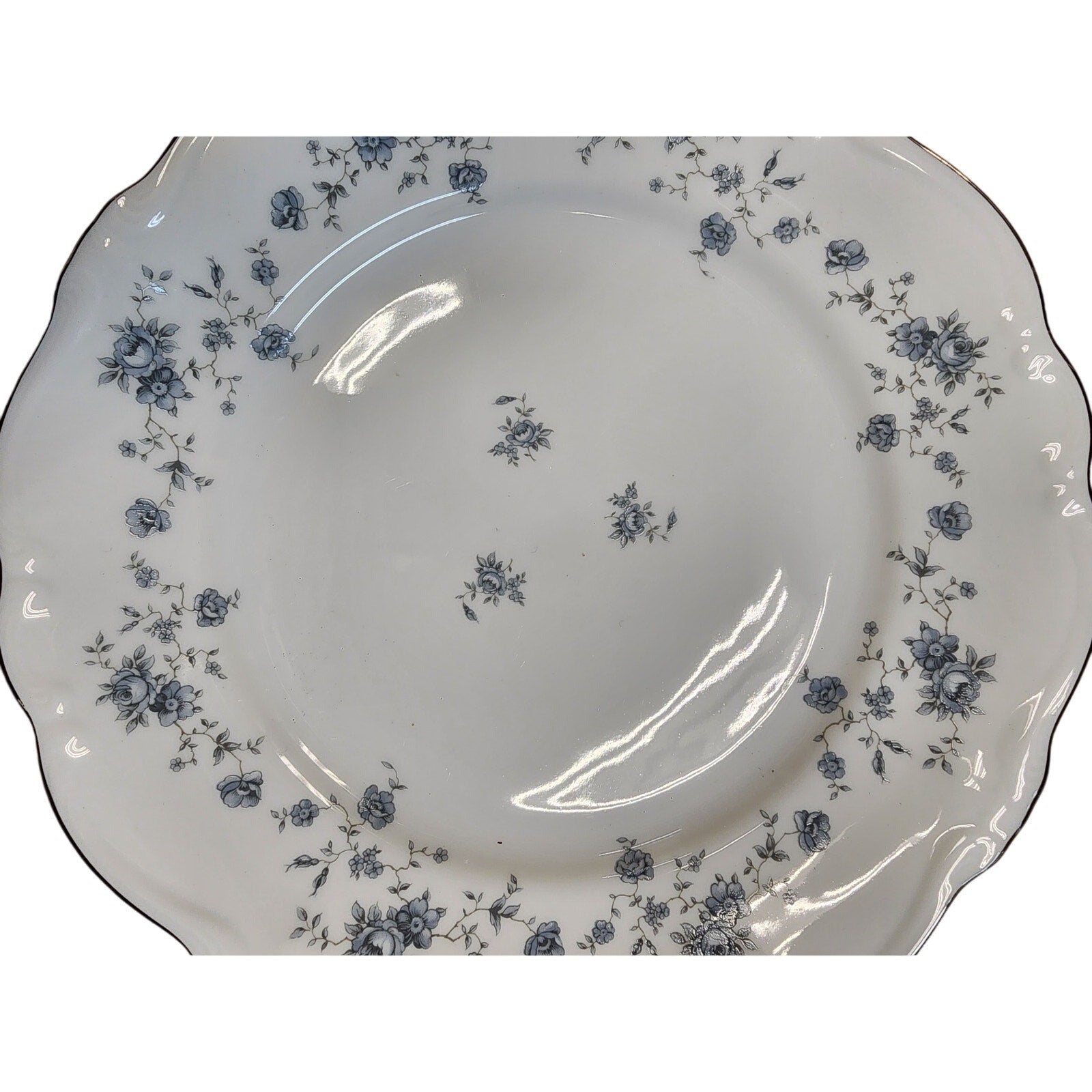 It features hand-painted blue rose garlands and genuine platinum trim on fine porcelain, exemplifying classic Bavarian design.