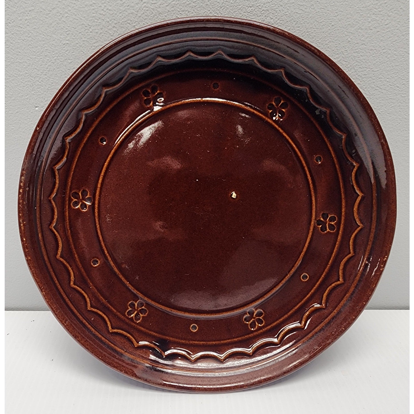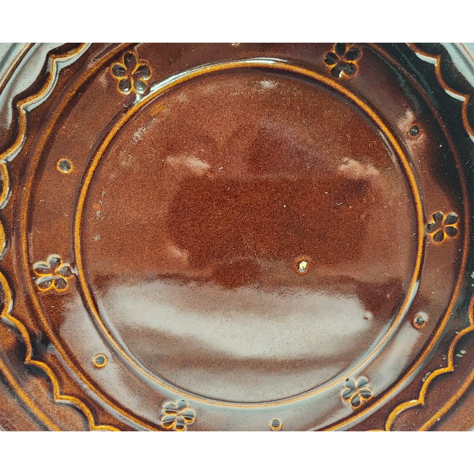 • Design: Classic Daisy Dot embossed floral and wavy band motif, glossy brown glaze