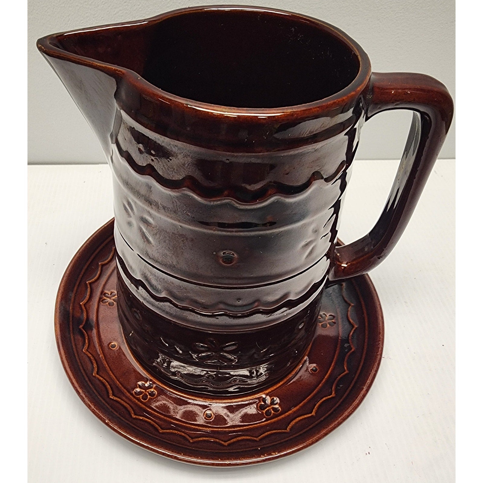 Bring timeless mid-century charm to your collection with this Marcrest Daisy Dot Brown Stoneware pitcher and matching plate.