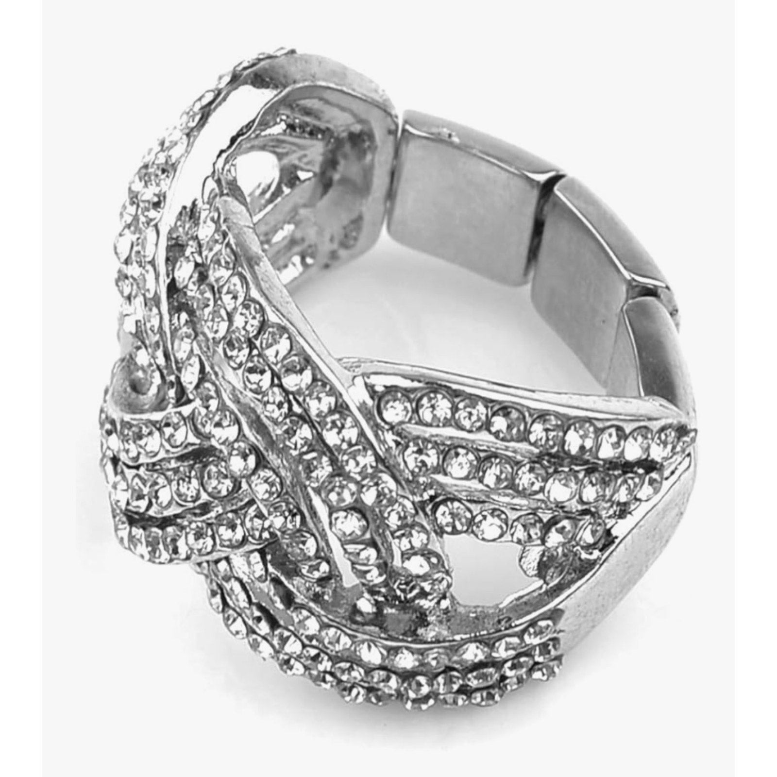 Nicole Miller New York Silvertone Twisted Stretch Clear Crystal Rhinestones Ring