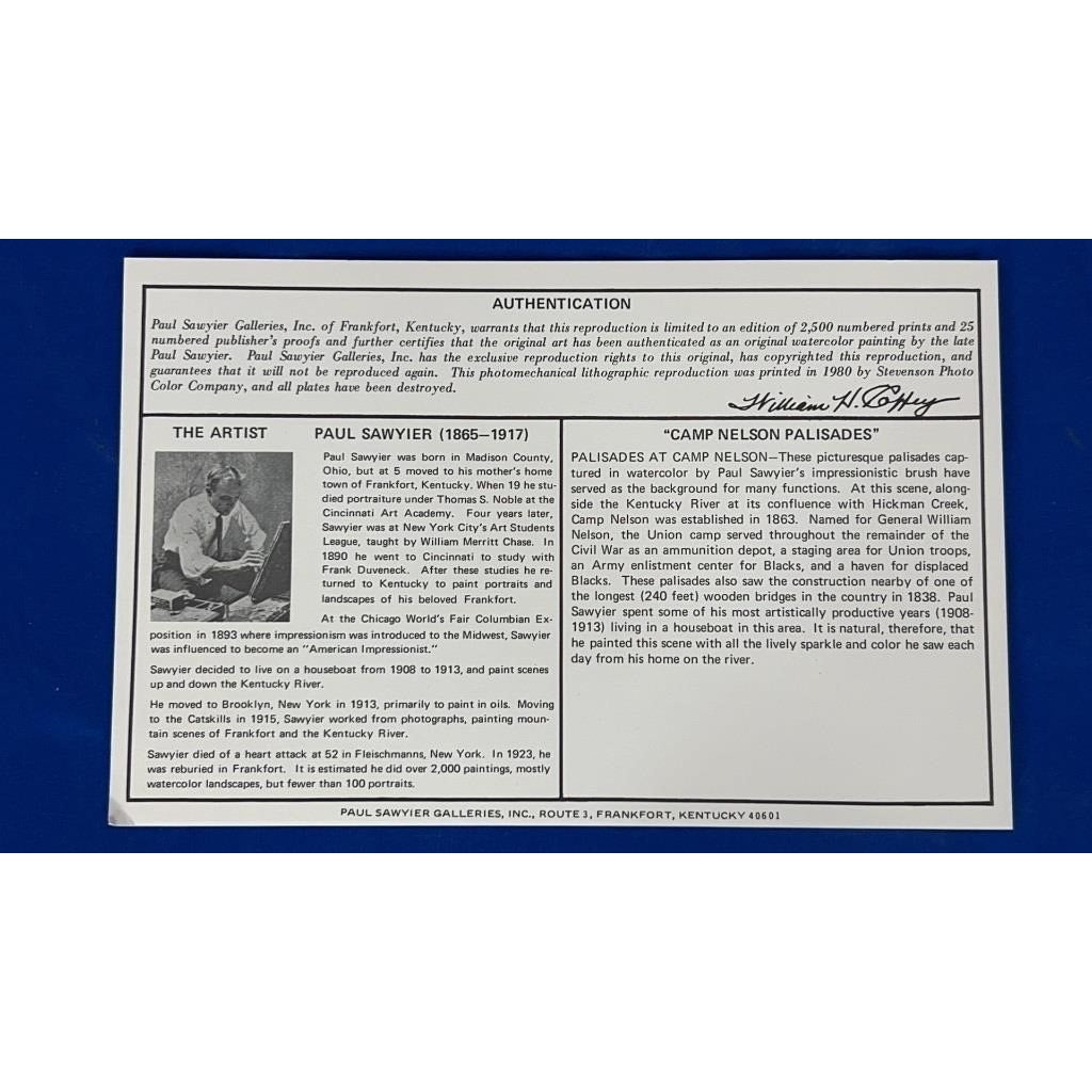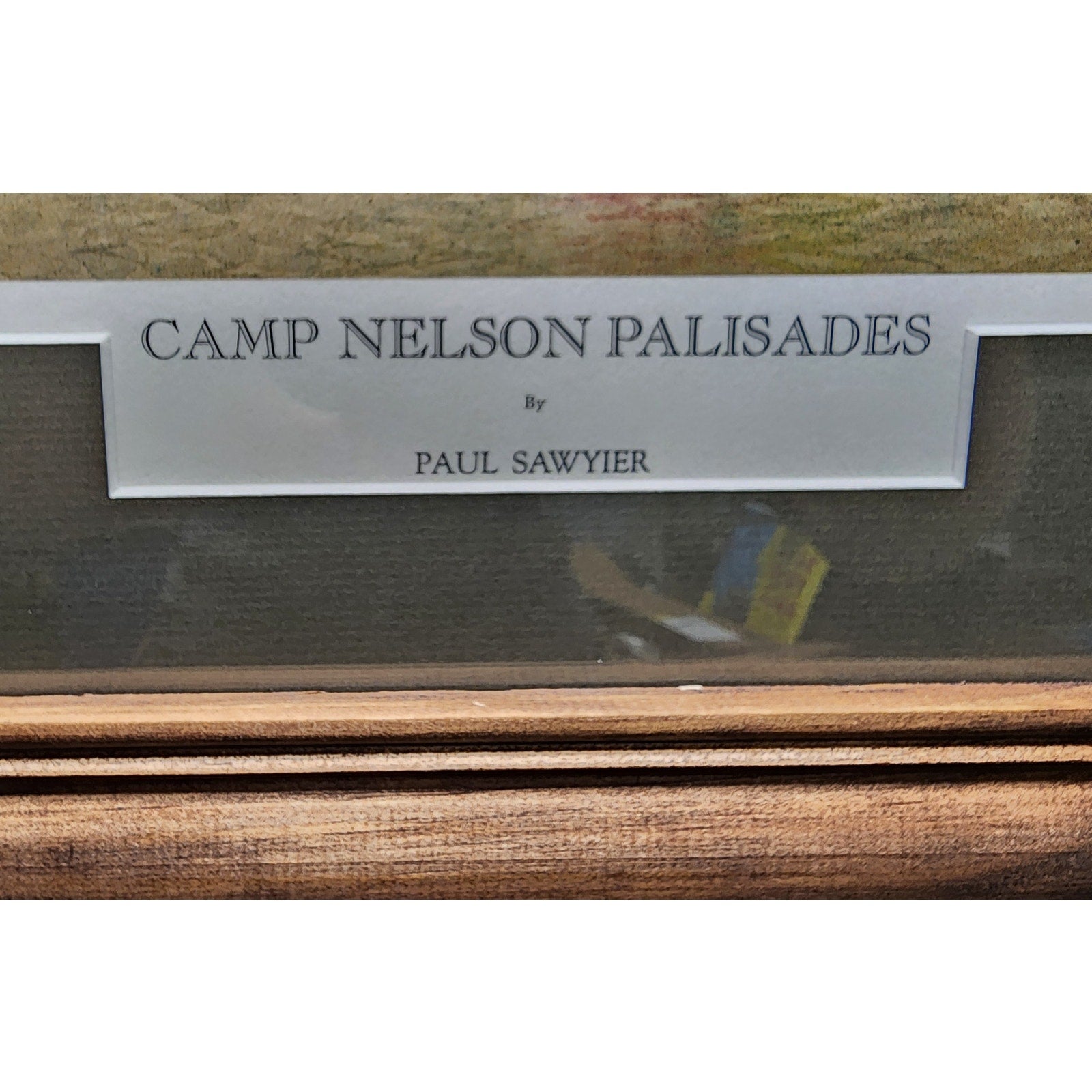 This lithograph, issued in 1980, faithfully reproduces his original work from the early 1900s, capturing the tranquil beauty of the Camp Nelson Palisades with rich detail and soft autumnal tones.