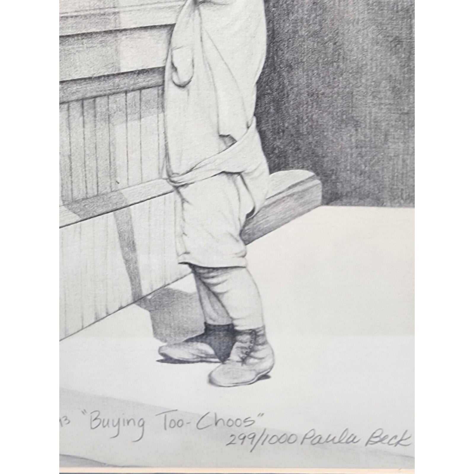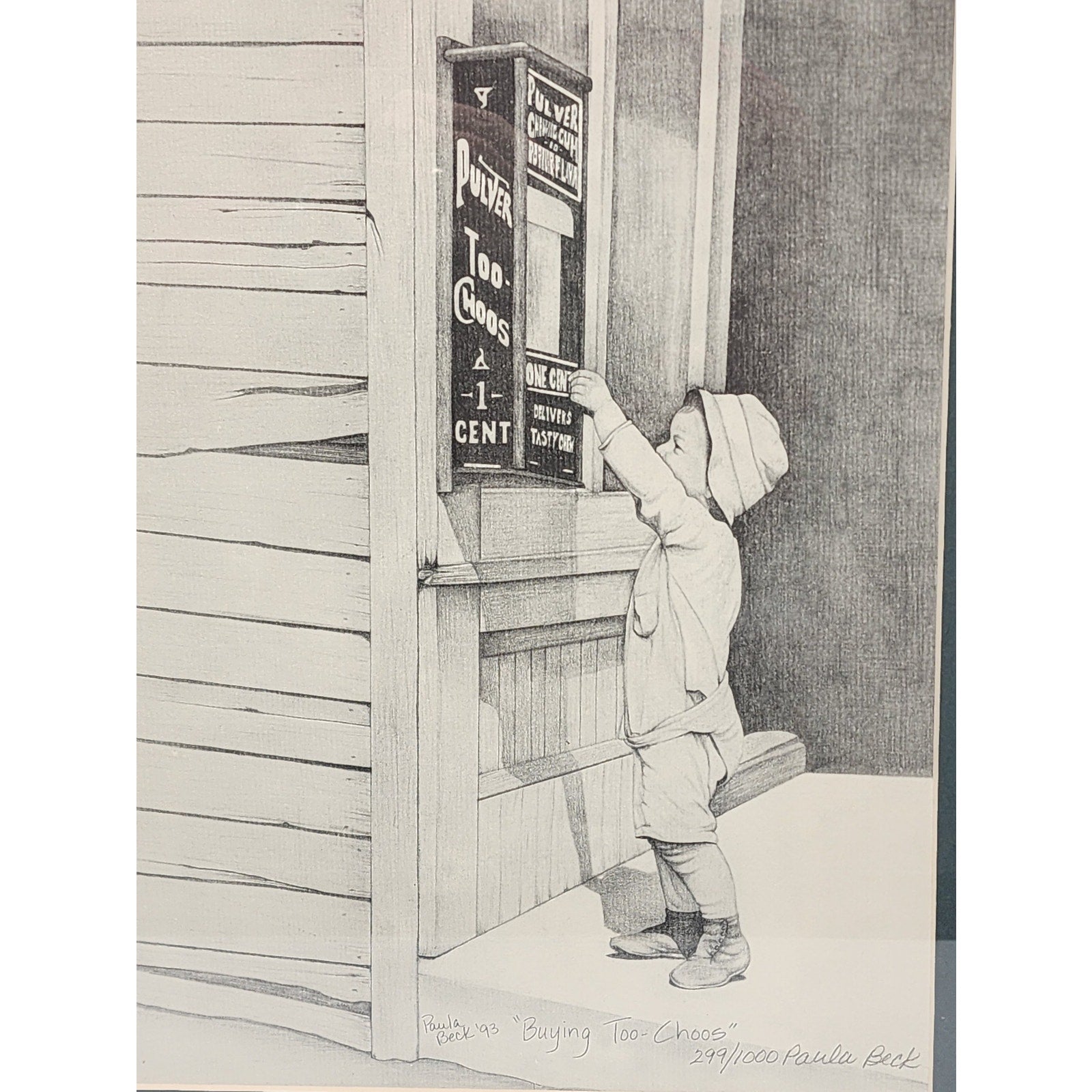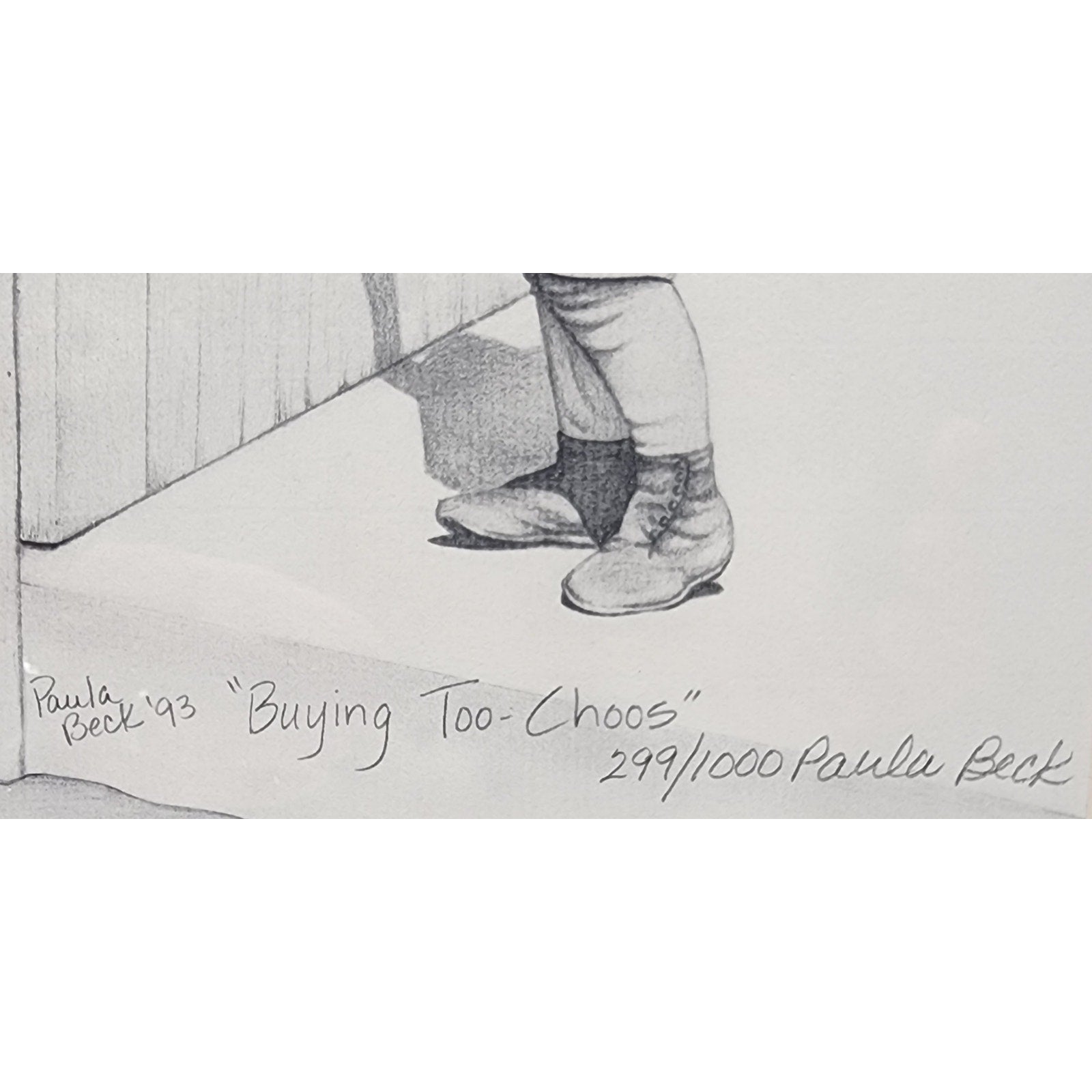 Bring home a nostalgic slice of Americana with this signed and numbered Paula Beck lithograph titled "Buying Too-Choos" (1993).