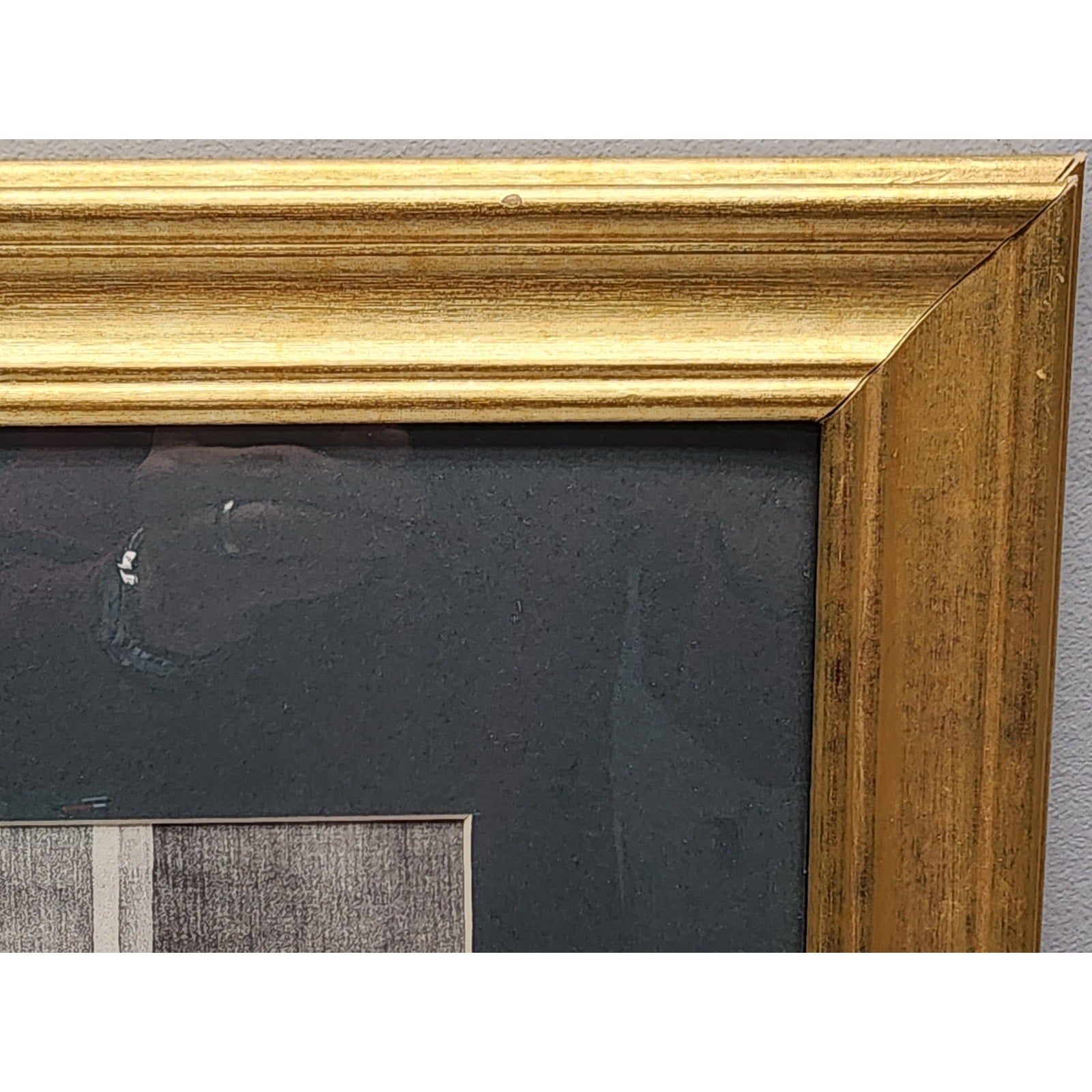 The gold ornate frame and sage matte elevate the presentation, making it suitable for display in living rooms, studies, or galleries.