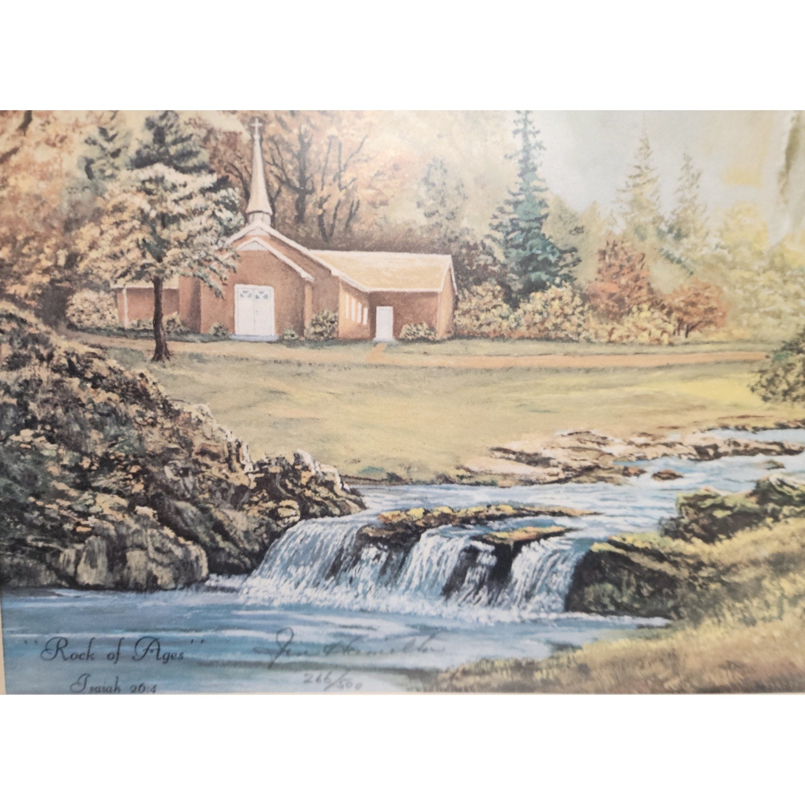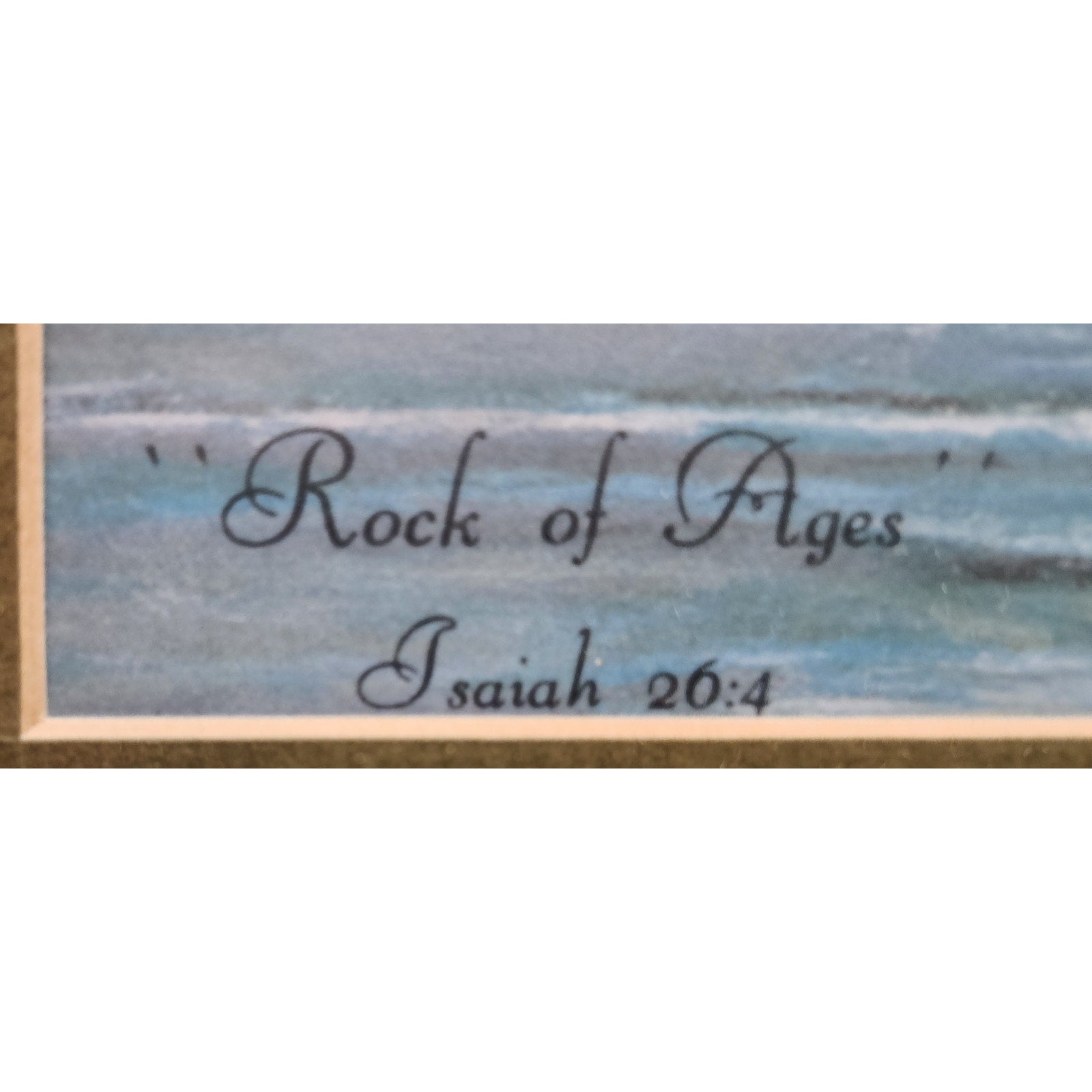 This is a limited edition lithograph titled Rock of Ages, numbered 266/500 and hand-signed by inspirational artist Jim Hamilton.