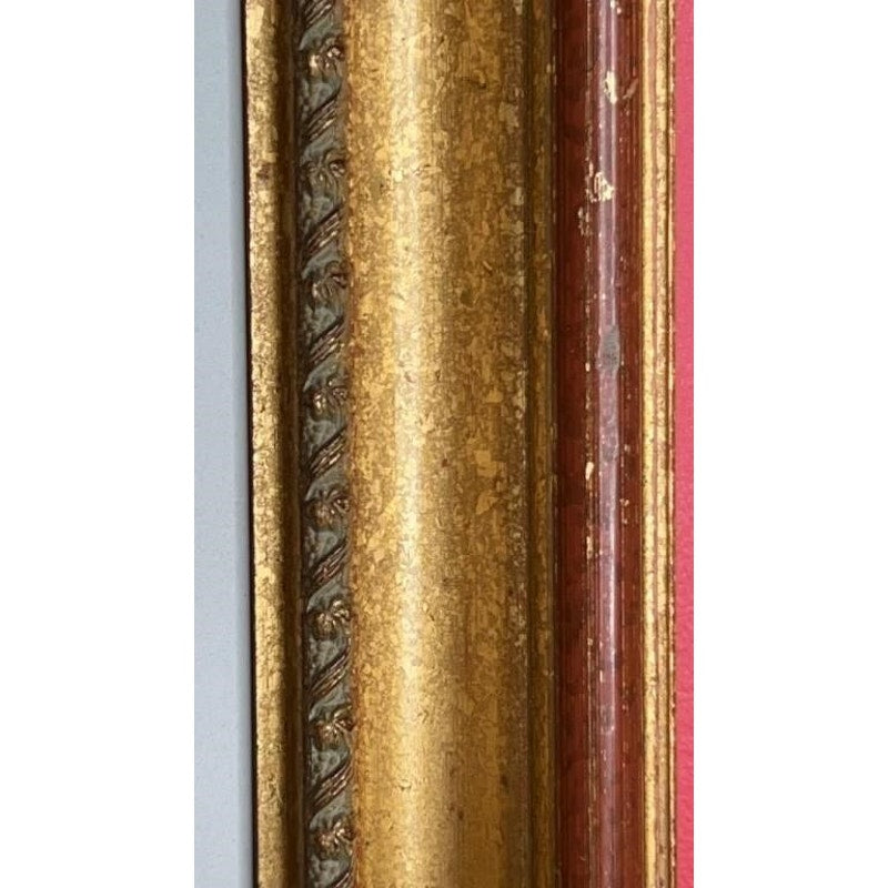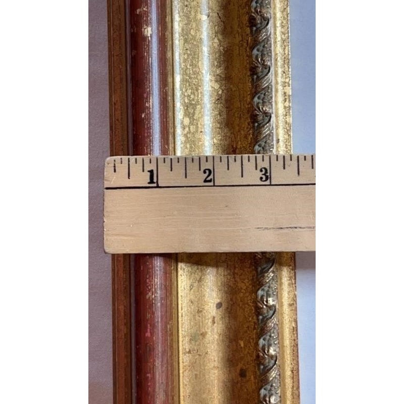 • Frame: Ornate wooden frame with gold inner edge, reddish-brown outer edge
