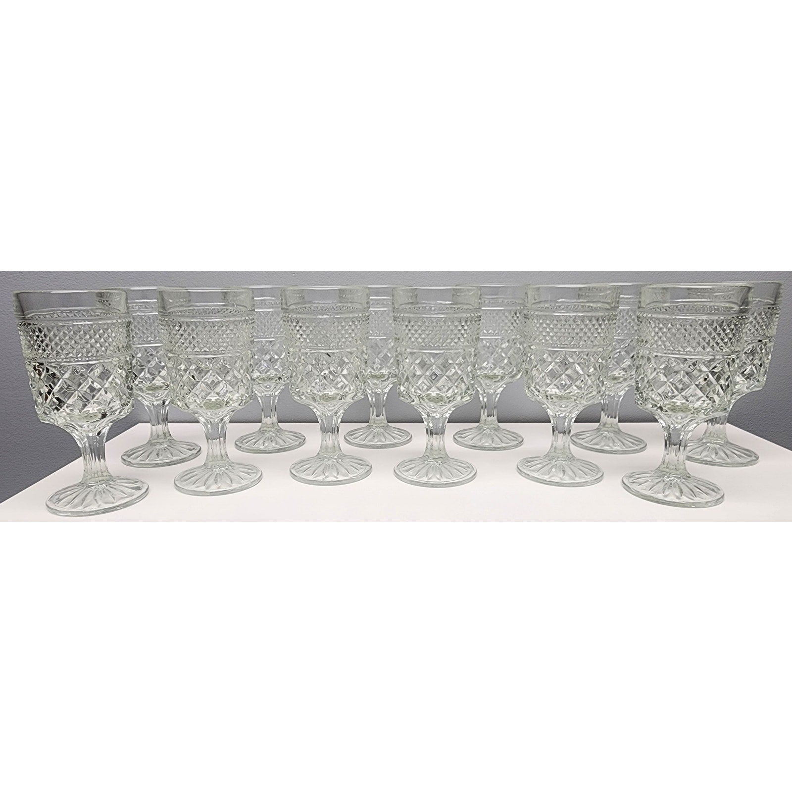 Set of 12 Vintage Anchor Hocking Diamond Cut Goblets 6.56" Tall Glassware