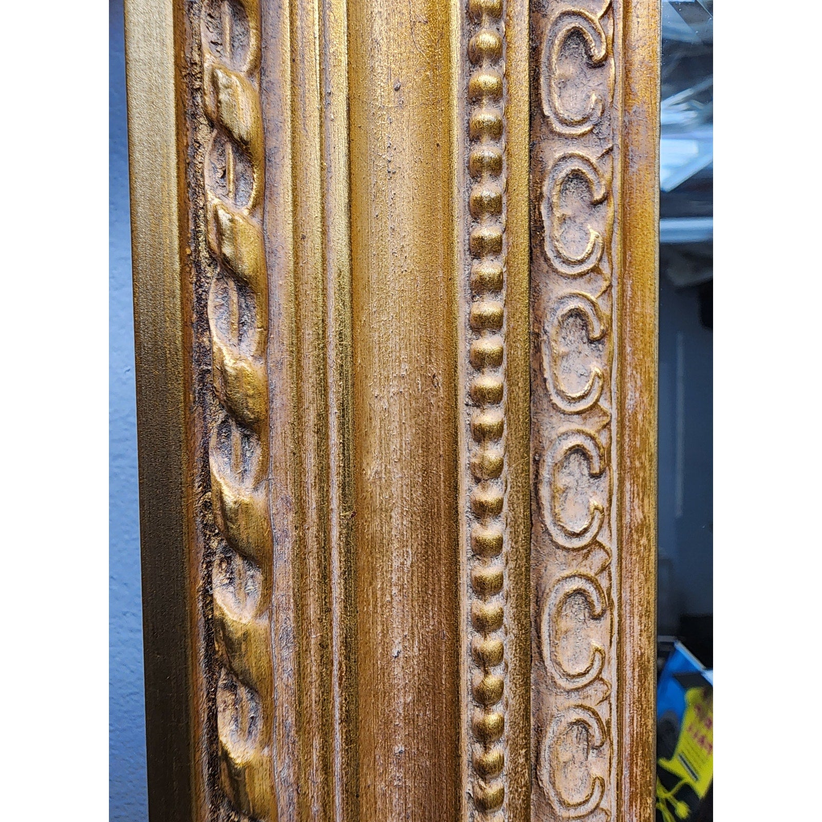 Vintage Beveled Glass Mirror – Ornate Gold Wood Frame, 44” Tall Elegant Design