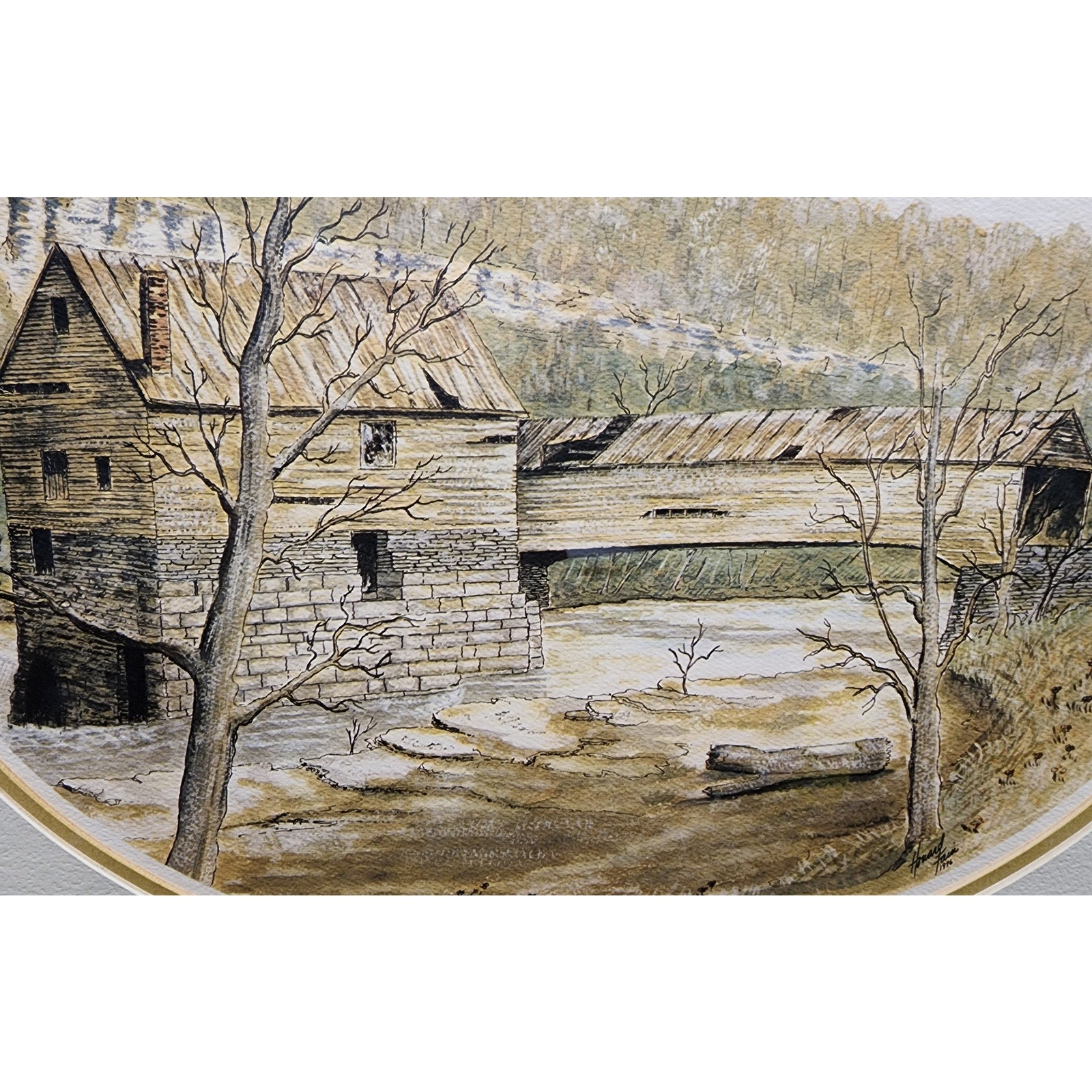 Vintage Howard Fain “King’s Mill” 1976 #291/500 Signed & Framed Print, Oval Matte