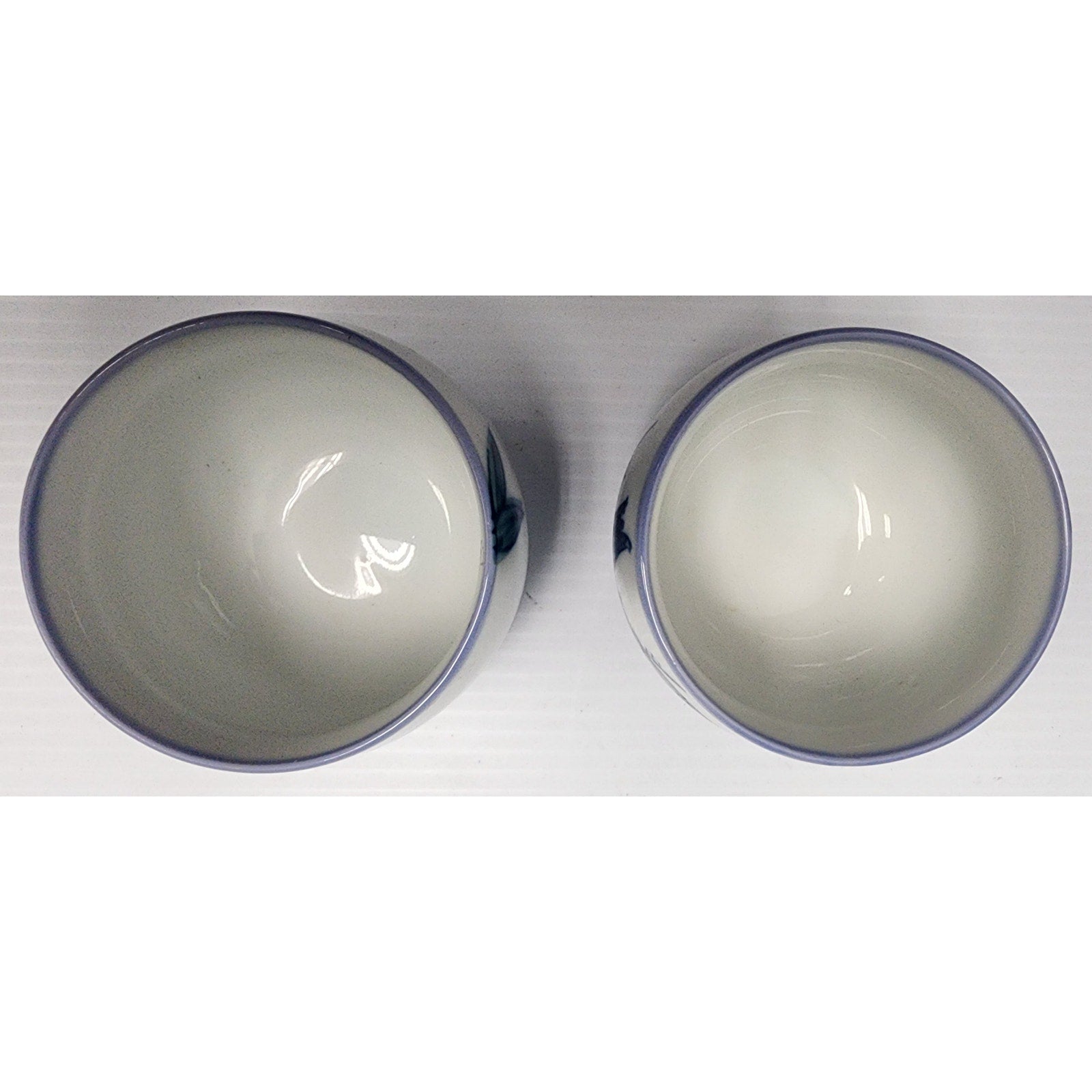 Vintage Japanese Porcelain Rice Bowls Set of 2 Blue Rim Hand Painted 3" Heavy