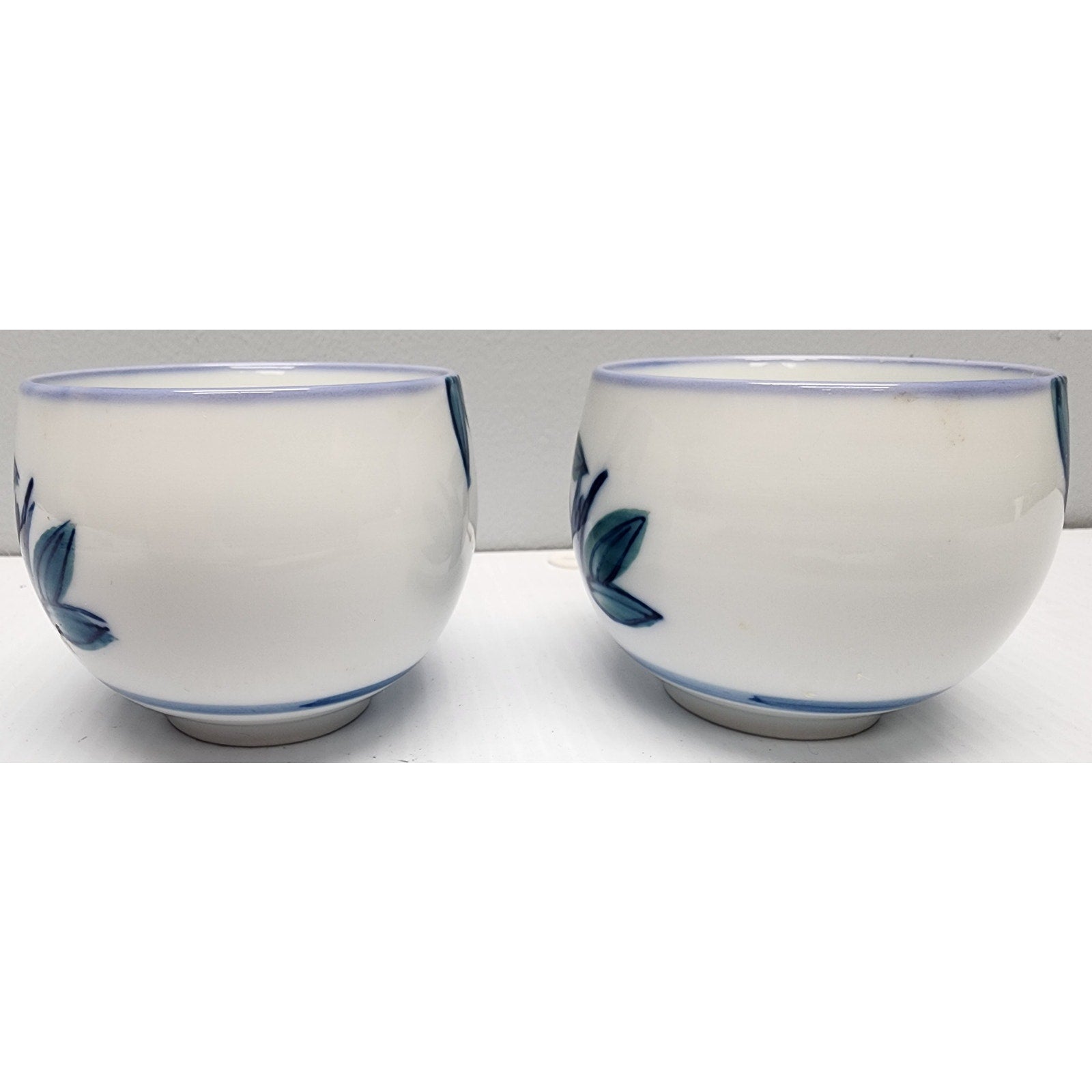 The bowls appear to be hand-painted, with subtle brushwork visible under the glaze. Their compact size and refined finish make them versatile for everyday use or as collectible display pieces.