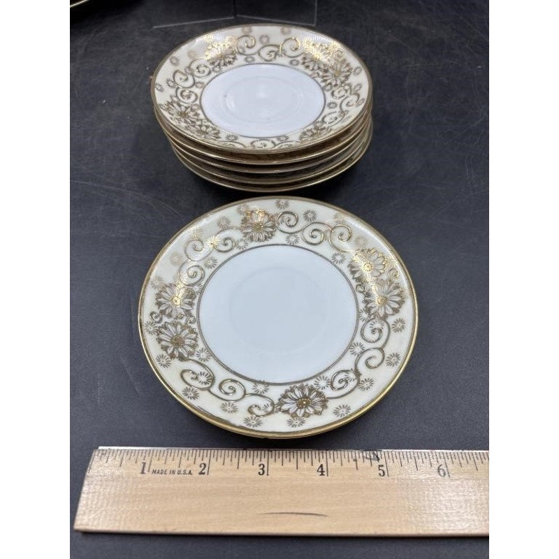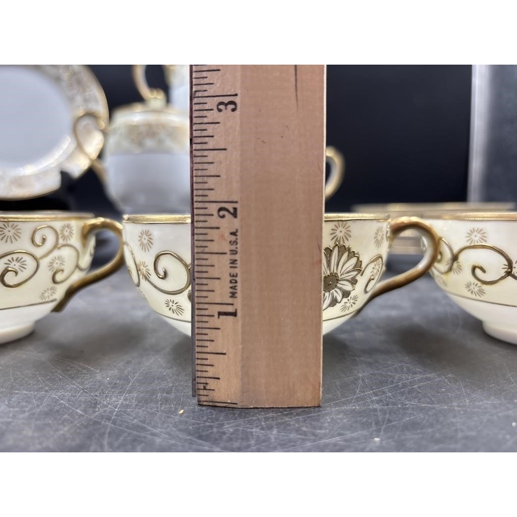 Vintage Japanese Tea Set | Eggshell Lusterware Cups + Porcelain Teapot & Serving Pieces | Gold Floral | Mid-Century Elegance
