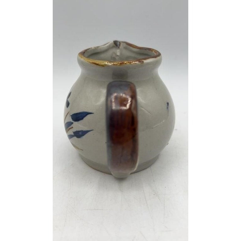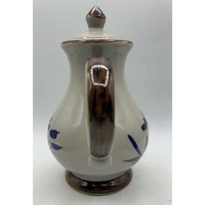 Elevate your tea or coffee service with this vintage Japanese-style stoneware set, made in Taiwan and beautifully hand-painted with a blue floral motif on a warm cream background.