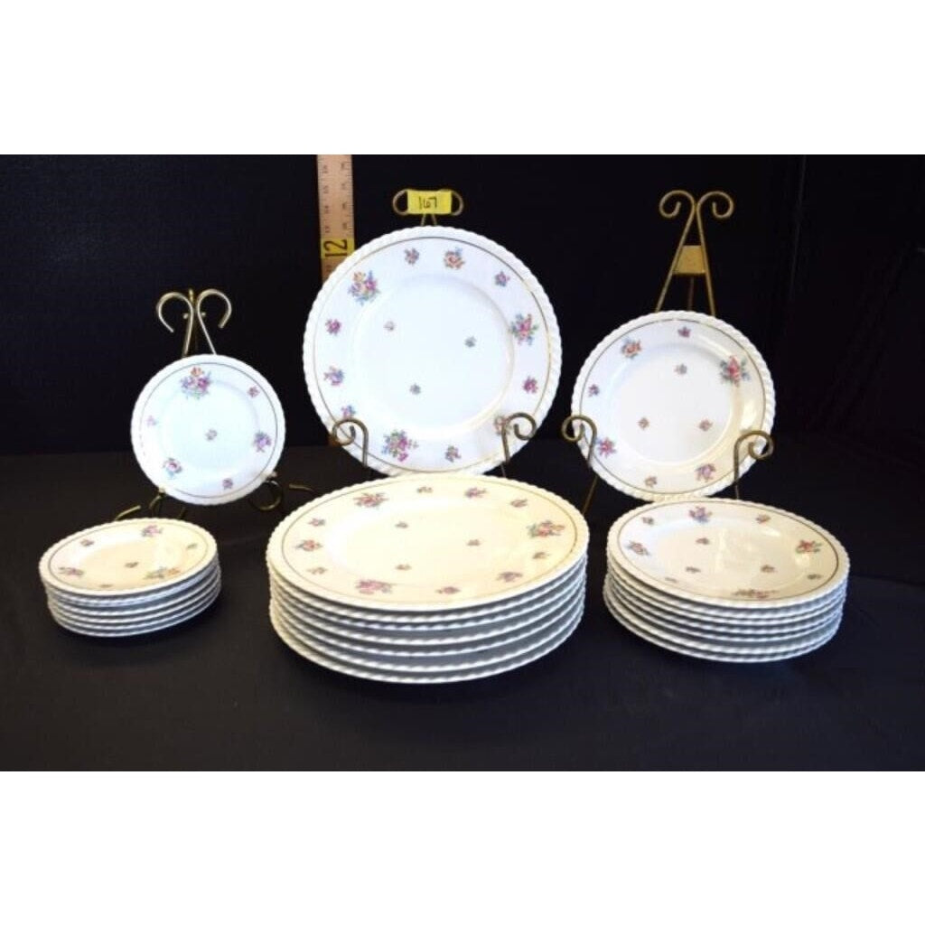Vtg Franconia Krautheim Selb Bavaria Gretchen 24pc Floral Set Gold Scalloped