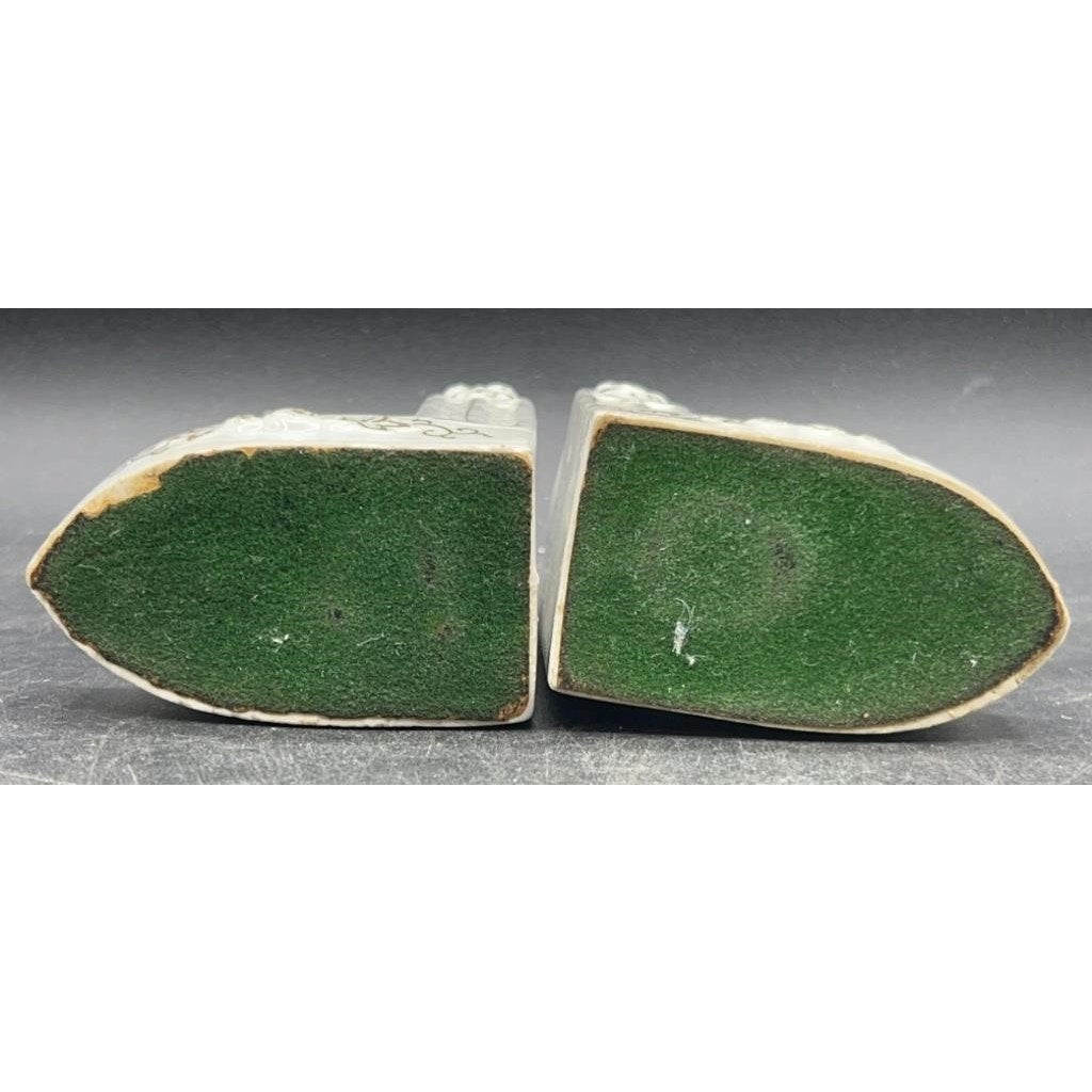 VTG Japanese Porcelain Colonial Man & Woman Bookends Hand-painted; 22K Gold Accent 5.25"