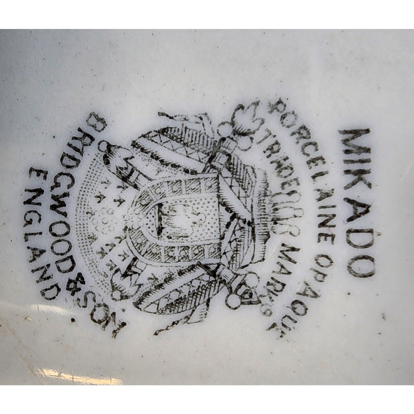 This vintage Mikado Porcelaine Opaque oval serving tray was crafted by Bridgwood & Son, England, and features a timeless floral rim design with a scalloped edge.