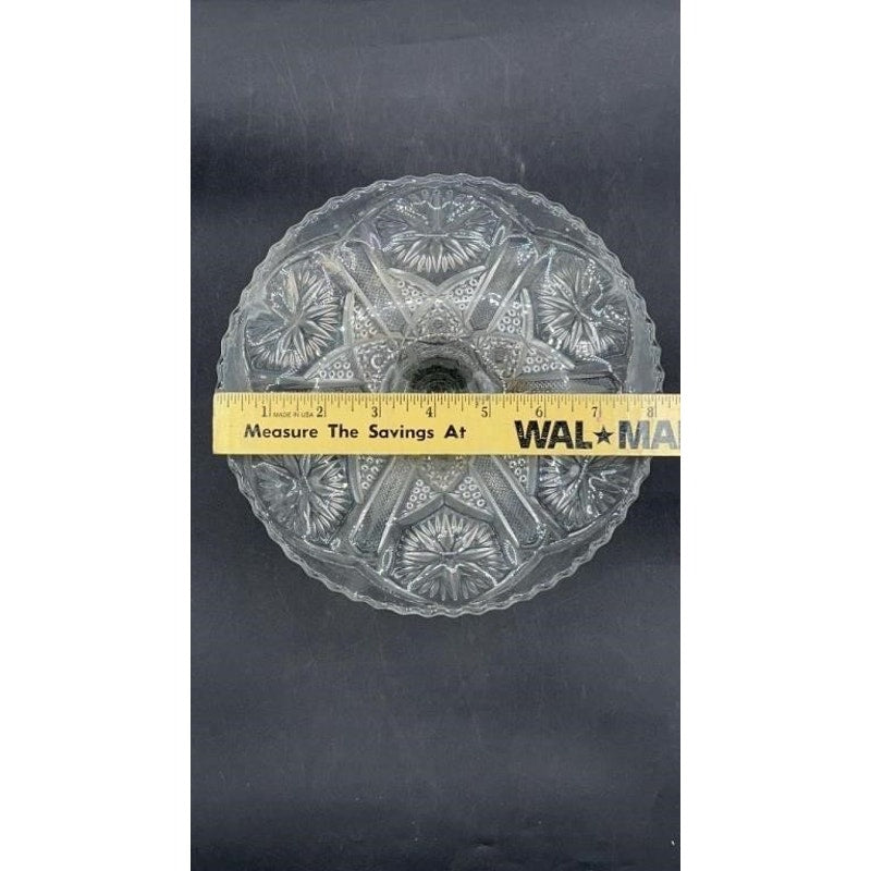 VTG Pressed Glass Pedestal Cake Stand 8.25" Scalloped Edge Starburst Design