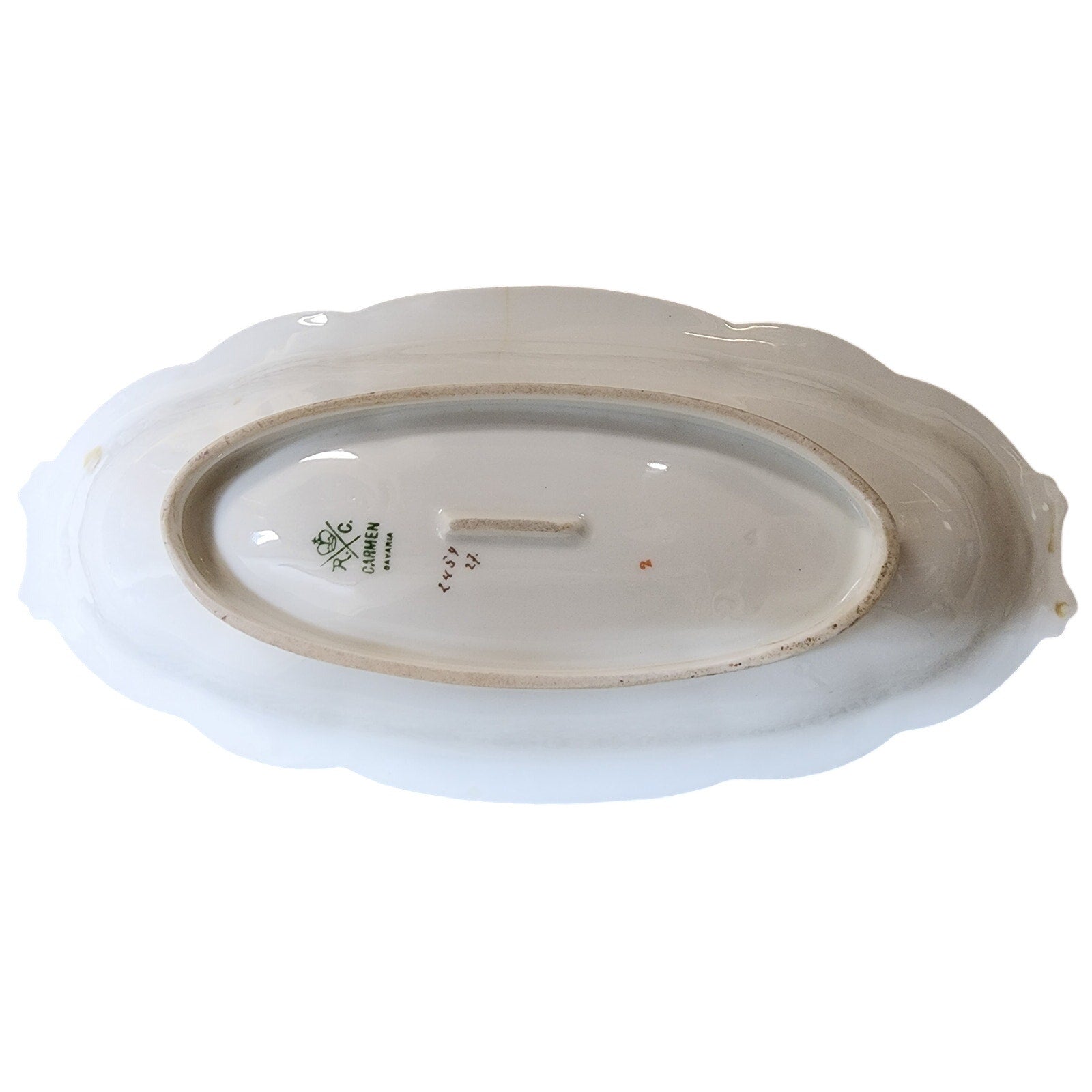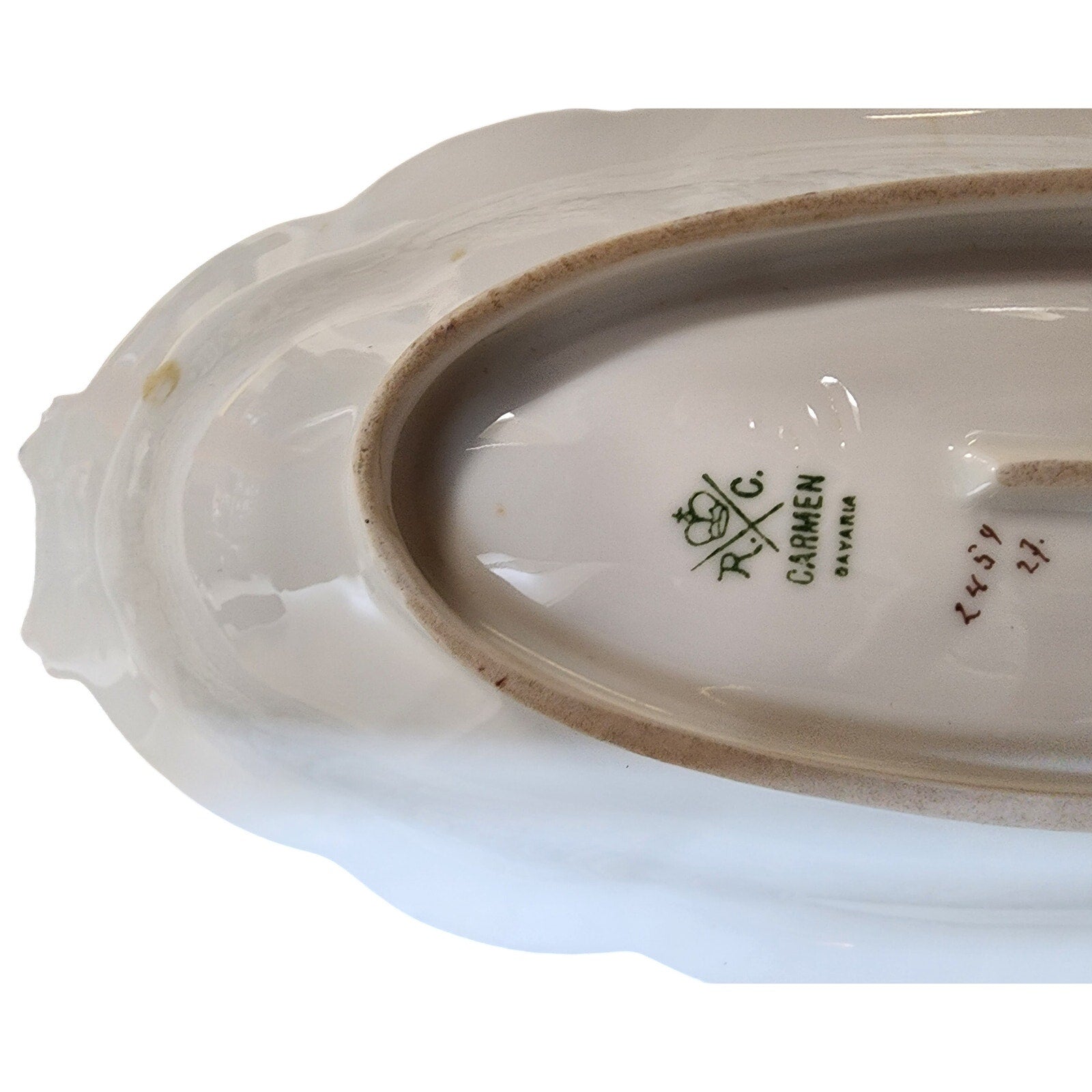 This vintage R.C. Carmen Bavaria oval nut tray showcases the elegance of early 20th-century Bavarian porcelain.
